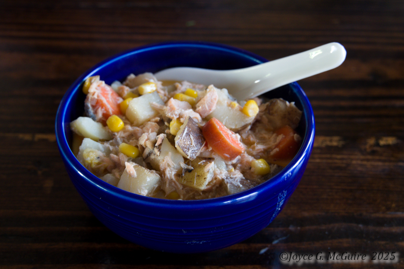 - Heat on medium-low until potatoes and fish are cooked through with the fish falling apart when poked.